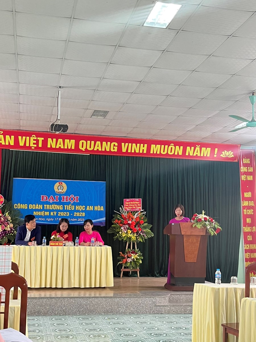 Ngày 17 tháng 3 năm 2023, Thực hiện KH của Liên đoàn lao động huyện An Dương, Công đoàn Trường Tiểu học An Hòa tiến hành đại hội lần thứ VI nhiệm kì 2023-2028 và bầu Đại biểu dự Đại hội công đoàn huyện khóa XI nhiệm kì 2023-2028. Đại hội vinh dự được đón tiếp đồng chí Trần Hồng Hiền - đại diện Liên đoàn Lao động huyện An Dương về dự, chỉ đạo và động viên Đại hội.